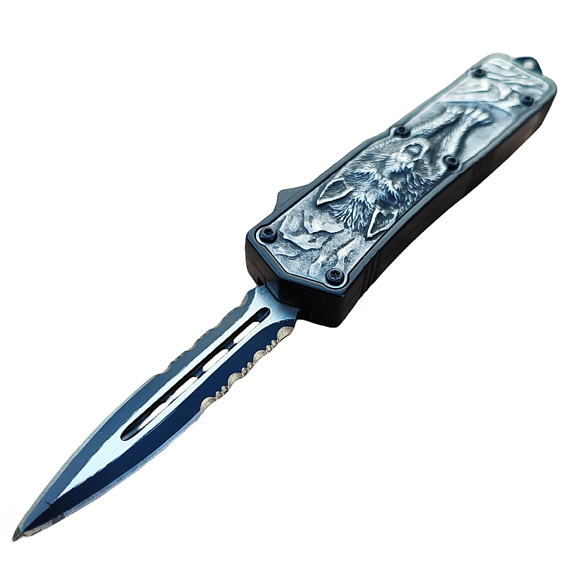 4/5.25/5.5 Inch Scarab Otomatik Carved Wolf Double Edge OTF Knife-TK202-01